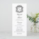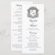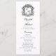 Este elegante programa de casamento apresenta uma crista no topo com as iniciais monográficas da noiva e do noivo na letra da escrita formal do rico.