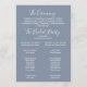Este programa de casamento floral azul empoeirado é perfeito para um primavera ou um casamento de verão. O design da delicada apresenta peônias azuis leves, organizadas com pessegueiros e flores cremosas em um buquê lindo. Inclua o nome da noiva e do noivo, a data e a localização do casamento, a mensagem do obrigado, a ordem do serviço e a festa noiva.