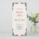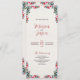 Este design do Programa de Casamento de Flores Botânicas Coloridas Mexicanas apresenta um layout vertical alto com um creme, fundo texturizado com padrões florais de ornamentado nos cantos superior e inferior. Os florais são corajosos e coloridos, com vermelhos profundos, azuis, pinks, amarelos e verdes acentuados por ramos escuros que criam uma fronteira vibrante mas equilibrada. A área central é deixada limpa e aberta, fazer ideal para destacar texto, convites ou detalhes de eventos enquanto mantém um charme elegante e inspirado no público.