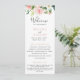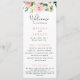 Felicite o seu clássico evento de casamento com este programa de casamento de flores elegantes de rosa. O design apresenta flores brancas e cor-de-água rosa com folhas verdes.