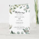Este programa de casamento dobrado de alegria de eucalipto verde é perfeito para um casamento moderno. A design apresenta um eucalipto elegante desenhado à mão por uma aquarela botânica, inspiradora beleza natural. Inclua uma citação ou mensagem curta, ordem de serviço, festa de casamento e obrigado da mensagem.