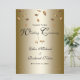 Adicione este Elegante Programa de Casamento de Folgas Douradas à sua Cerimônia de Serviço de Casamento. Os lados frontal e traseiro são projetados com folhas de cor dourada brilhante e texto preto sobre fundo de cor dourada macia. Para personalizar, basta substituir o texto de exemplo pelos detalhes do Serviço de Casamento usando nosso modelo passo a passo.
