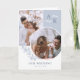 O programa de casamento dobrado em branco e azul-pomba com suas iniciais, fotos sobrepostas e verde com fontes elegantes limpas. Programa de casamento fotográfico com um design moderno personalizado com seu monograma e fotos.