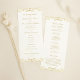 Elegante vintage inspirou programas de cerimônias de casamento em um estilo plano de painel de tamanho de chá, apresentando um design de borda decorativa de ornamentado com uma aparência metálica de um shimmer de ouro de champanhe. Personalize o modelo personalizado com seus detalhes de texto e ajuste o texto, se necessário, usando a ferramenta "Personalizar!".