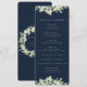 Um simples programa de casamento no tom navy escuro, apresentando uma borda de snowberries pintadas à mão e eucalipto na frente e uma coroa na parte de trás. Todo o texto é totalmente editável. Por favor, visualize esta Coleção na minha loja para programas com redação alternativa e em diferentes tamanhos/cores/formatos. Itens coordenados também disponíveis.