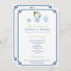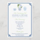Design do programa de casamento "Smart Chinoiserie" com frascos pintados manualmente de gengibre e uma borda chave grega.