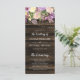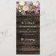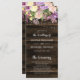 Flores de lavanda roxas de aquarela roxas e decoração verde estes programas de casamento rústicos. Design apresenta flores com luzes de cordas e um fundo de madeira de celeiro escuro com uma fonte moderna.