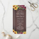 Estes programas de casamento de girassol apresentam girassóis e rosas de burlões em fundo de madeira. A frente do cartão tem a cerimônia e a parte traseira do cartão lista a festa noiva. Estes programas de casamento fazem parte de uma coleção que inclui um cheio de papelaria de casamento que você pode personalizar para o seu casamento. Visite nossa loja para ver o intervalo de cheios.