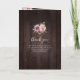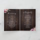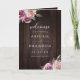 Design floral botânico de cor aquática em roxo malvado, amoreira, rosa poeirado e cor de pêssego em fundo de madeira de celeiro escuro, modernos e elegantes cartões de programa de casamento de excelente para o casamento botânico no outono e no inverno. Veja todas as peças correspondentes na coleção.