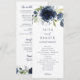 Programa Casamento de marinho Azul Silver Floral Watercolor