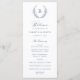 O Elegante Laurel Wreath Crest Casamento Monograma. Ordem de Serviço de Casamento Tradicional. Marinho Azul Monograma Crest Convite De Casamento.