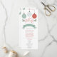O floco de neve bonito crestou baubles de Natal em verde-menta, cinzas-luz e vermelho-vermelho-dusky são o foco deste programa de casamento design, que também apresenta uma faixa para a noiva e os nomes do noivo com os detalhes abaixo. Os detalhes da festa noiva estão atrás com uma tosse sagrada no canto superior.