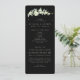 Um programa/ordem de cerimônia de núpcias preto, com um esboço de cerimônia condensada e obrigado a mensagem na frente e uma lista para uma grande festa de casamento no verso. Apresentando arranjos de morangos pintados à mão e eucalipto à frente e atrás. Todo o texto é totalmente editável. Veja esta Coleção na minha loja para programas com textos/layouts de alternativo e em tamanhos/cores/formas diferentes. Itens de coordenação também disponíveis.