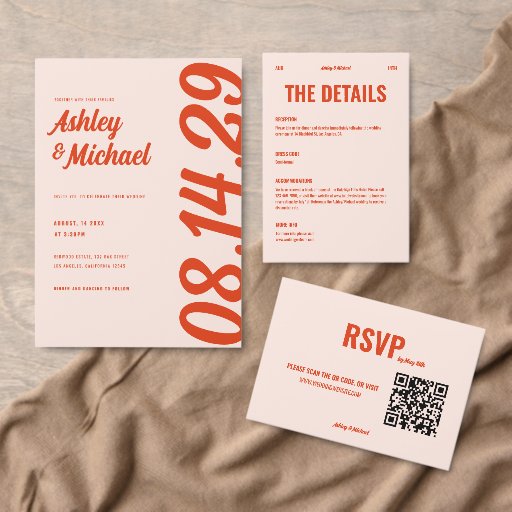 Programa de Casamento de Pêssegos Brilhante e Colorido. Adicione nomes de noiva e noivo, data de casamento e informações de cerimônia na frente, e seus nomes de festa de casamento nas costas.