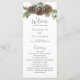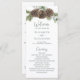 Esses programas de casamento de temas de inverno apresentam um buquê de pinecones, pinus, verde e groselhas de neve no topo, com um roteiro de caligrafia tradicional para os cabeçalhos e modelos de texto fáceis de editar. Encontre produtos correspondentes na coleção ou envie-me mensagem através do Zazzle Chat se precisar de ajustes de design ou mais produtos correspondentes.
