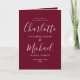 Um programa de casamento com script de assinatura burgundy apresentando tipografia moderna chic, este programa de casamento de na moda pode ser personalizado com sua informação especial do dia do casamento. Projetado por Thisnotme©
