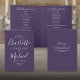 Programa de casamento com script de assinatura roxa com tipografia moderna quic, este programa de casamento com na moda pode ser personalizado com sua informação especial do dia do casamento. Projetado por Thisnotme©