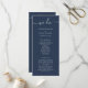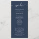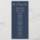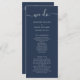 Elegante programa de casamento azul e prata de marinho com uma fonte moderna. Itens correspondentes disponíveis.