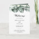 Este programa de casamento floral floral verde tropical é perfeito para um casamento de destino. A design apresenta palmeiras verdes folhas buquês com flores brancas adoráveis. Inclua uma citação ou mensagem curta, ordem de serviço, festa de casamento e obrigado da mensagem.