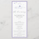 Um programa de casamento simples, elegante, com um tema náutico, com dois quadros clássicos de cor azul marinho, tipografia clássica e caligrafia moderna, bem como um impressão de tinta de uma cena de água com ondas estilizadas, um pequeno barco e gaivotas. Uma escolha adorável para um casamento ou recepção na praia, um casamento costeiro, um casamento no lago, um casamento no barco ou iate (clube), um casamento de cruzeiro ou qualquer cenário náutico.
