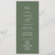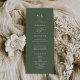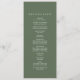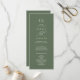 Este refinado programa de casamento verde de sábio da Coleção Sophia apresenta caligrafia varrida em branco nítido. Elegante, mas ao ar livre — é ideal para jardins, vinhedos ou casamentos florestais com um sentimento natural e romântico. Inclua as iniciais dos casais, os nomes do casal, a data e o local do casamento, a mensagem do obrigado, a ordem de serviço, a festa de casamento e um memorial opcional "em memória amorosa".