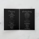Este programa de casamento de flores silvestres multicolores do jardim é perfeito para um casamento rústico. O design apresenta uma variedade multicolorido de flores silvestres cor-de-rosa, pinceladas, roxas, amarelas, brancas, violetas, vermelhas e burgundy em fundo preto. Inclua uma citação ou mensagem curta, ordem de serviço, festa de casamento e obrigado da mensagem.