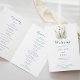 Este moderno programa de casamento dobrado de flores silvestres é perfeito para um casamento rústico. A design apresenta flores verdes, amarelas, púrpuras, azuis colorido-d'água coloridas. Inclua uma citação ou mensagem curta, ordem de serviço, festa de casamento e obrigado da mensagem.