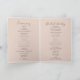 Este claro programa de casamento dobrado pela montanha é perfeito para um casamento rústico. O design apresenta uma coloração aquática idílica, montanha bege. Inclua uma citação ou mensagem curta, ordem de serviço, festa de casamento e obrigado da mensagem.
