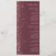 A borda esquerda deste elegante programa de casamento moderno apresenta um rosa dourado faux glitter design. O texto personalizável combina manuscrito cor-de-rosa-rosa, fontes em copperplate e itálico em um fundo burgundy escuro.
