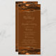 Este elegante e moderno programa de casamento mostra cor d'água laranja queimada agata bordas superiores e inferiores aparadas com brilho dourado. O texto aparece em letras elegantes douradas e fontes copperplate em fundo marrom-noz.