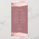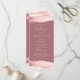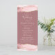 Este elegante e moderno programa de casamento apresenta cor d'água rosa pincelada agata bordas superiores e inferiores aparadas com brilho dourado. O texto é exibido em letras elegantes e letras maiúsculas e minúsculas em fundo de rosa empoeirado.