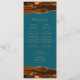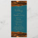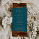 Este elegante e moderno programa de casamento mostra cor d'água laranja queimada agata bordas superiores e inferiores aparadas com brilho dourado. O texto aparece em letras elegantes douradas e fontes em cores sobre fundo azul lacrimogêneo.