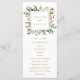 Este programa de casamento apresenta eucalipto pintado à aquarela, folhas verdes, bagas vermelhas, ramos de pinheiro e uma moldura quadrada dourada falsa com um fundo vermelho no verso. Para personalização mais avançada deste design, clique no link "Personalizar ainda mais". Itens correspondentes também estão disponíveis.