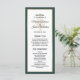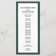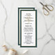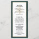 Forneça aos seus hóspedes esta design do programa de casamento, simplesmente elegante, com um roteiro moderno, um texto preto, juntamente com uma árvore de Natal estrelada e ouro metálico e uma fronteira verde esmeralda. Personalize-o com os seus nomes, data do casamento, obrigado da sua mensagem e detalhes da cerimônia. Os nomes das festas de casamento estão atrás. Perfeito para um casamento de inverno ou Natal.
