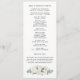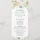Este elegante programa de cerimônias de casamento em estilo rústico apresenta um belo arranjo de borda de flores neutras em aquarela, incluindo rosas pintados, flores ranunculus, e folhas em tons de branco, rosa-pincel, creme, ouro, verde. Perfeito para um evento de primavera ou verão. Personalize o texto verde folha na moda e cinza escura em ambos os lados do cartão com sua cerimônia personalizada, festa de casamento e obrigado sua mensagem.