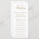 Avise aos seus hóspedes o que esperar em seu dia especial com este programa de casamento tradicional com seus nomes em uma elegante caligrafia de tom de ouro e a ordem da cerimônia na frente. A parte de trás tem a sua festa de casamento. Além de informar seus convidados sobre a ordem do serviço e quem está na festa de casamento, esses programas de casamento fazem uma lembrança de excelente. Este design clássico é perfeito para um casamento formal.