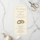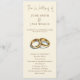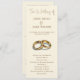 Esta moderna design de cerimônia de núpcias apresenta um fundo minimalista de creme com serifa marrom elegante e tipografia de roteiro. Um par ilustrado à mão de anéis de ouro adiciona um toque clássico, simbolizando unidade e amor. A frente destaca uma ordem clara de cerimônia, enquanto o inverso apresenta a festa de casamento em um layout refinado e fácil de ler. Perfeito para casamentos contemporâneos, formais ou vinícolas, essa design combina a tradição eterno com a simplicidade moderna. A mensagem de gratidão sentida no final oferece uma nota pessoal para os convidados.