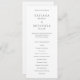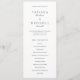 Programa de casamento elegante com um design simples e clássico com seus detalhes de eventos em fontes de serifa e de script elegante tradicionais.