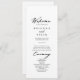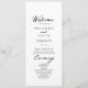 Este programa elegante de casamento de caligrafia é perfeito para um casamento rústico. O design simples e elegante apresenta a tipografia de scripts clássicos e ricos em preto e branco.