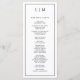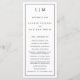 Programa de Casamento Moderno com um design simples, mas elegante, com um layout tradicional. Seu monograma de duas letras está no topo junto com seus detalhes cercados por uma borda fina. Todos os elementos de design são pretos sobre um fundo branco e podem ser alterados na ferramenta de edição de design. Um design minimalista com um sentimento clássico que é excelente de um casamento formal.