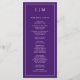 Programa de Casamento Moderno com um design simples, mas elegante, com um layout tradicional. Seu monograma de duas letras está no topo junto com seus detalhes cercados por uma borda fina. Todos os elementos de design são brancos sobre um fundo roxo real e podem ser alterados na ferramenta de edição de design. Um design minimalista com um sentimento clássico que é excelente de um casamento formal.