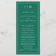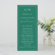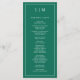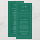 Programa de Casamento Moderno com um design simples, mas elegante, com um layout tradicional. Seu monograma de duas letras está no topo junto com seus detalhes cercados por uma borda fina. Todos os elementos de design são brancos sobre um fundo verde esmeralda de tom joalheiro e podem ser alterados na ferramenta de edição de design. Um design minimalista com um sentimento clássico que é excelente de um casamento formal.