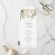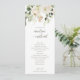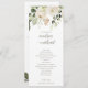 Programas Elegantes de Casamento com Flores Brancas de Aquarela e Verde: Este programa de casamento apresenta um belo buquê floral branco e verde / cor d'água foliar no topo. A parte traseira tem espaço para sua festa de casamento junto com um obrigado que você ou uma mensagem de memória na parte inferior.