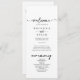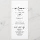 Este moderno programa de casamento elegante da caligrafia é perfeito para um casamento rústico. O design simples e elegante apresenta a tipografia de scripts clássicos e ricos em preto e branco.