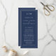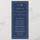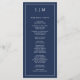Programa de Casamento Moderno com um design simples, mas elegante, com um layout tradicional. Seu monograma de duas letras está no topo junto com seus detalhes cercados por uma borda fina. Todos os elementos de design são brancos sobre um fundo azul do marinho e podem ser alterados na ferramenta de edição do design. Um design minimalista com um sentimento clássico que é excelente de um casamento formal.