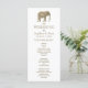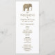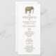 Simples, elegante, mínimo programa de casamento branco com moderno roteiro de caligrafia e monograma de elefante de folha de ouro - com iniciais no topo.