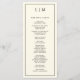 Programa de Casamento Moderno com um design simples, mas elegante, com um layout tradicional. Seu monograma de duas letras está no topo junto com seus detalhes cercados por uma borda fina. Todos os elementos de design são pretos sobre um fundo de creme de marfim e podem ser alterados na ferramenta de edição de design. Um design minimalista com um sentimento clássico que é excelente de um casamento formal.