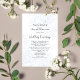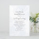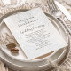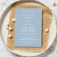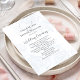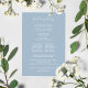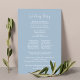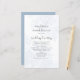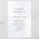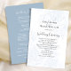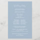 Uma simples folha de papel do programa de cerimônia de casamento. Apresentando um elegante, minimalista, simples, design floral, com roteiro de caligrafia e rosas florais azuis e verde, uma simples tipografia