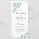 Belo eucalipto pintado à mão deixa decorar este programa de casamento personalizado.