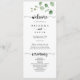 Este programa de casamento de eucalipto com prazer verde é perfeito para um casamento simples. A design apresenta galhos e folhas botânicas elegantes e desenhadas a aquarela e desenhadas à mão.